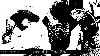 Dans le noir de la salle, deux personnes anonymisées derrière des masques funèbres accomplissant un genre de cérémonie me font penser à une sorte de rituel funéraire mexicain (???). Il y a 4 bougies allumées et posées au sol devant elles pour seul éclairage. Elles vont "jouer" avec les larsens de 2 guitares placées par terre devant elle. Elles vont y mettre de légers coups de pied de temps à autres pour relancer les oscillations sonores de ces dernières. Je n'ai pas vraiment compris le sens de cette "performance", ni vu le lien avec les larsens générés par les 2 protagonistes, mais bon ce n'est pas grave je regarde 15 mn et je quitte la salle pour aller boire un verre et en profiter pour en discuter dehors. Il fait hyper bon dans la cour intérieure, des gens rient, discutent, bavardent tandis que les 2 dj's de "Casse-croûte et Sulfite" nous passent des bons sons pour ambiancer cet excellent moment. Nickel finalement !!!